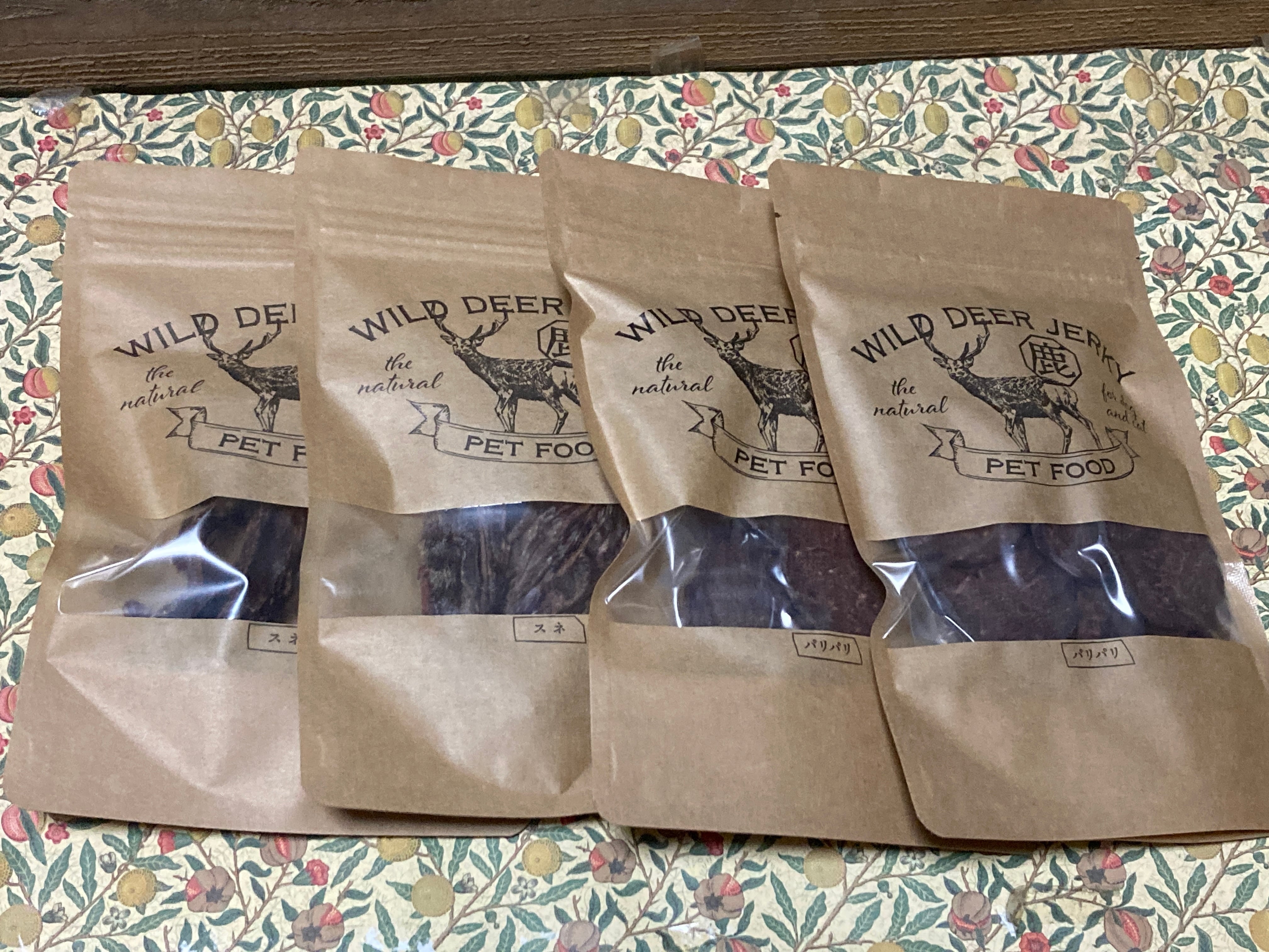 鹿、猪ジャーキーを4袋宅急便コンパクトにてお届けします。